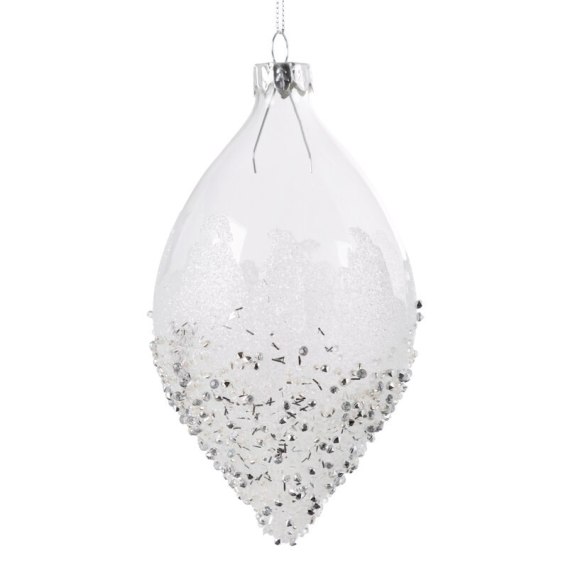 Bombka szklana zdobiona kryształkami kolor: biały, Skład: 100% szkło
