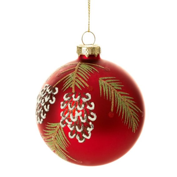 Bombka szklana zdobiona wzorem z brokatu kolor: czerwony, Skład: 100% szkło