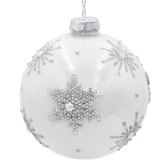 Bombka szklana zdobiona wzorem z koralików oraz kryształków kolor: biały, Skład: 100% szkło