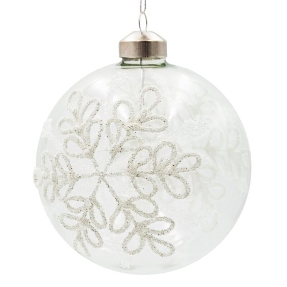 Bombka szklana zdobiona brokatem kolor: biały, Skład: 100% szkło