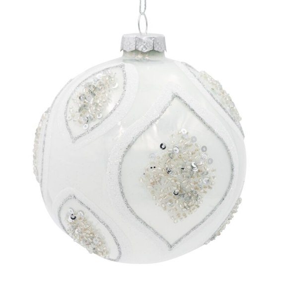 Bombka szklana zdobiona kryształkami kolor: biały, Skład: 100% szkło