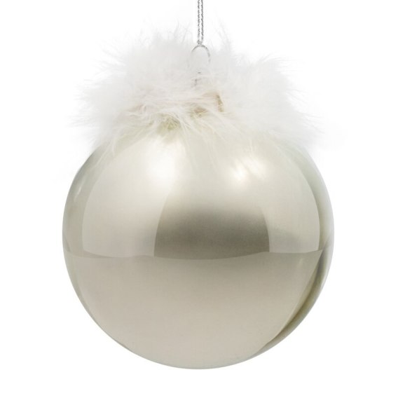 Bombka szklana zdobiona piórkami kolor: srebrny, Skład: 100% szkło
