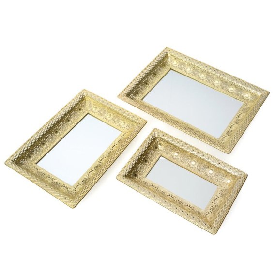 Komplet tacek dekoracyjnych z lustrzanym dnem szerokość: 40 cm, długość: 30 cm, kolor: złoty, Skład: żelazo, szkło