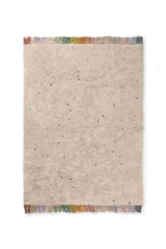 Huśtaj się wśród gwiazd dzięki dywanikowi do prania w pralce Stardust. Ręcznie wykonany prostokątny bawełniany dywan w naturalnym kolorze z małymi ciemnymi kropkami symulującymi gwiezdny pył w rozległej przestrzeni. Wykończony jest krótkimi frędzlami na krawędziach w różnych kolorach wynikających z mieszanki kolorów, które ożywiają kolekcję. Dywan, który nie tylko zdobi, ale także inspiruje. Niezbędny z osobowością dla tych, którzy szukają wyjątkowych elementów wystroju.