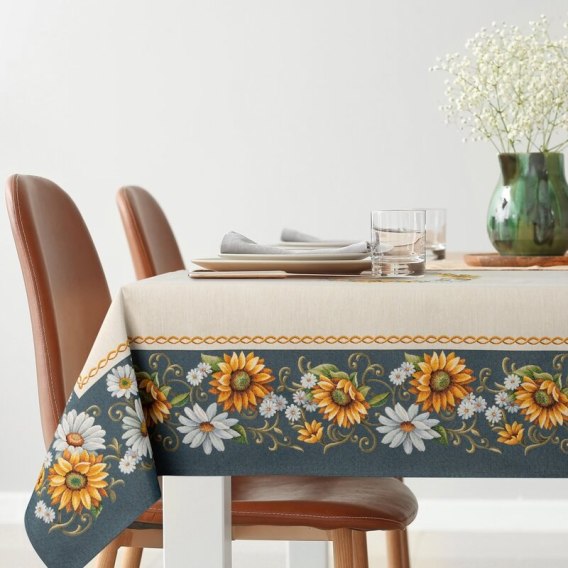 Obrus gobelinowy szerokość: 140 cm, długość: 180 cm, kolor: ciemnoniebieski, Gramatura: 410 GSM, Skład: 63% poliester, 34% bawełna, 3% akryl