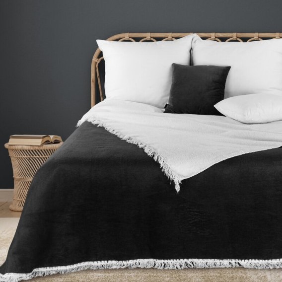 Koc akryl dwukolorowy z frędzlami szerokość: 220 cm, długość: 240 cm, kolor: srebrny, Gramatura: 450 GSM GSM, Skład: 58% bawełna, 32% akryl, 10% poliester