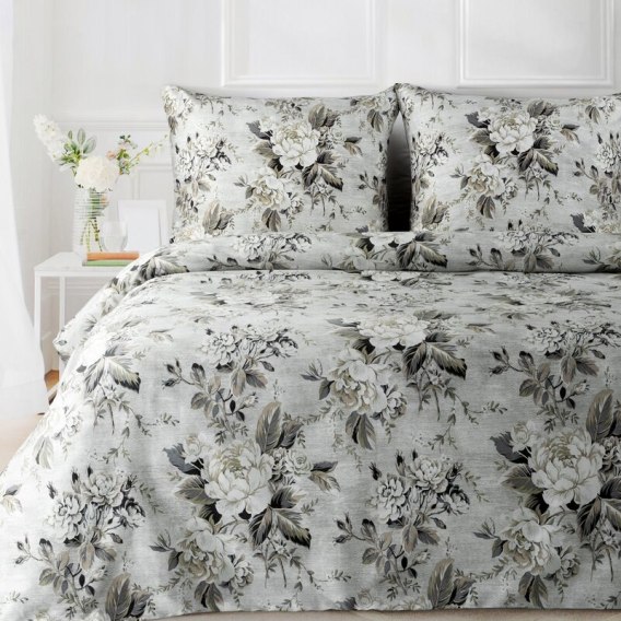 Komplet pościeli z satyny bawełnianej z nadrukiem szerokość: 220 cm, długość: 200 cm, kolor: srebrny, Gramatura: 115 GSM, Skład: satyna, 100% bawełna
