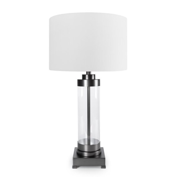Lampa dekoracyjna, stołowa szerokość: O 40 cm, długość: 74 cm, kolor: biały, Skład: lampa: szkło, metal; abażur: poliester , Zasilanie: CE 220-240V , Żarowka: 1 X E27 MAX 60W , Klasa energetyczna: A-G