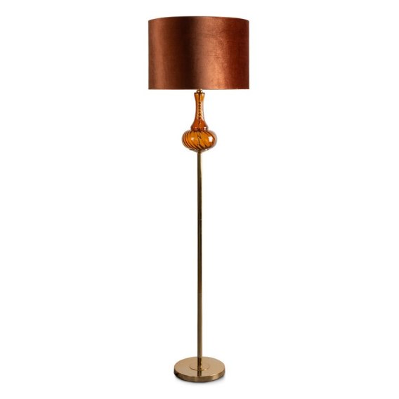 Lampa dekoracyjna, stojąca szerokość: O 46 cm, długość: 163 cm, kolor: miedziany, Skład: lampa: szkło, metal; abażur: poliester , Zasilanie: CE 220-240V , Żarowka: 1 X E27 MAX 60W , Klasa energetyczna: A-G