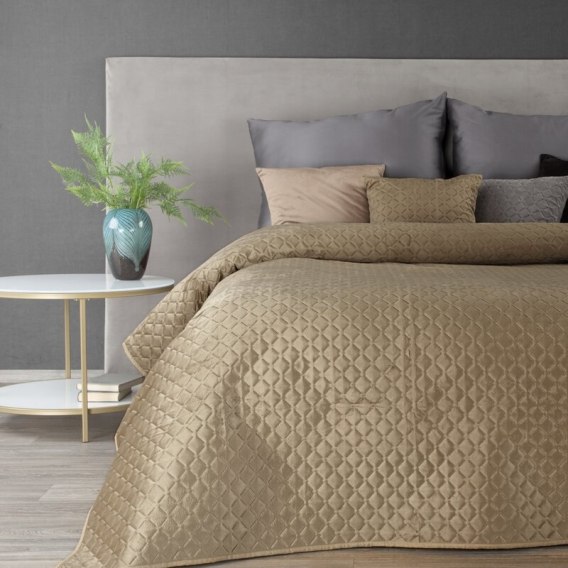 Narzuta welwetowa dwustronna wykonana metodą hot press szerokość: 200 cm, długość: 220 cm, kolor: beżowy, Gramatura: 180 GSM, Skład: 100% poliester