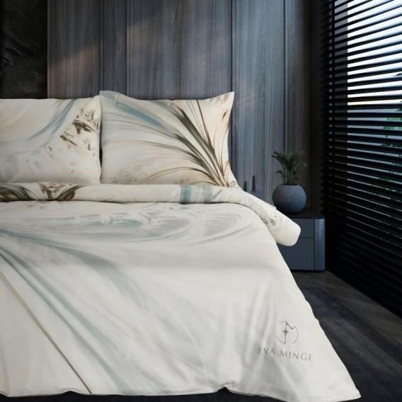 Komplet ekskluzywnej, designerskiej pościeli z satyny bawełnianej z kolekcji polecanej przez Eva Minge. Zapinana na zamek błyskawiczny. Precyzyjne wykonanie. szerokość: 220 cm, długość: 200 cm, kolor: kremowy, Gramatura: 125 GSM, Skład: makosatyna, 100% bawełna