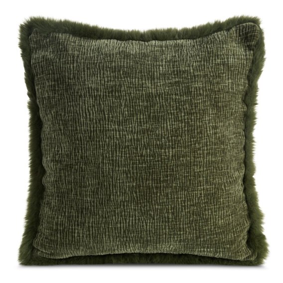 Szenilowa poszewka dekoracyjna z ozdobną lamówką szerokość: 45 cm, długość: 45 cm, kolor: oliwkowy, Gramatura: 330 GSM, Skład: 100% poliester