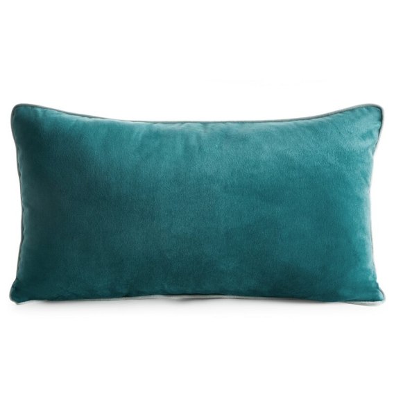 Welwetowa poszewka z wypełnieniem obszyta dekoracyjną lamówką szerokość: 30 cm, długość: 50 cm, kolor: ciemnoturkusowy, Gramatura: 220 GSM, Skład: 100% poliester