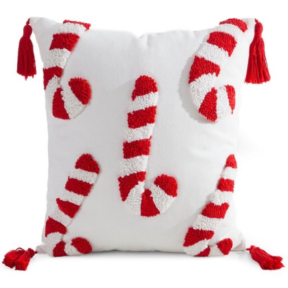 Świąteczna poszewka dekoracyjna z aplikacją i pomponami szerokość: 45 cm, długość: 45 cm, kolor: biały, Gramatura: 270 GSM, Skład: 65% poliester, 35% bawełna