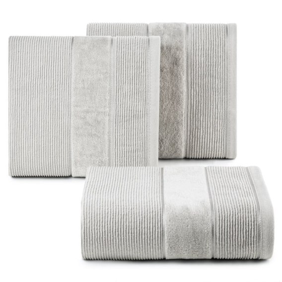 Ręcznik bawełniany o strukturze w prążki z welurową bordiurą szerokość: 70 cm, długość: 140 cm, kolor: srebrny, Gramatura: 500 GSM, Skład: 100% bawełna