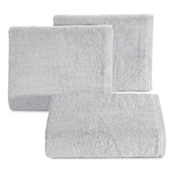 Jednokolorowy, gładki ręcznik kąpielowy z miękkiej tkaniny bawełnianej o splocie frotte. Lekki, trwały i bardzo chłonny. Kolory odporne na częste pranie. szerokość: 50 cm, długość: 90 cm, kolor: srebrny, Gramatura: 500 GSM, Skład: 100% bawełna