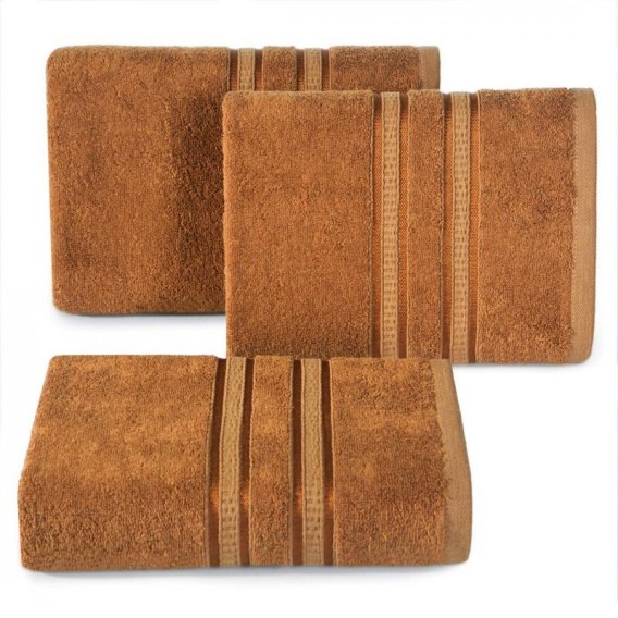 Ręcznik bawełniany z ozdobną bordiurą szerokość: 70 cm, długość: 140 cm, kolor: jasnobrązowy, Gramatura: 500 GSM, Skład: 70% wiskoza z włókna bambusowego, 30% bawełna; część ozdobna: 100% wiskoza