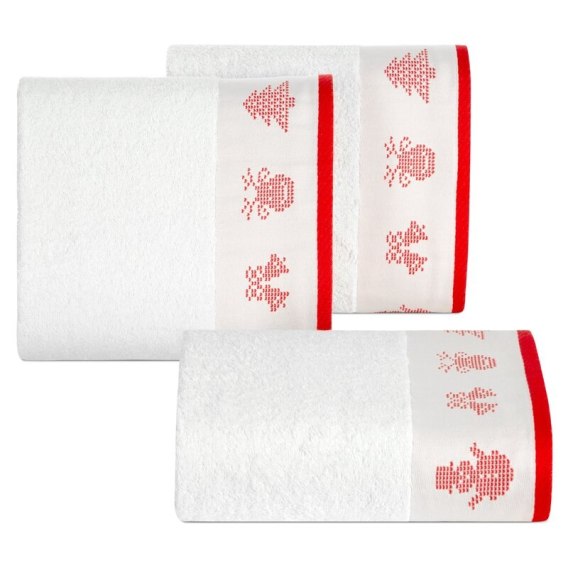 Ręcznik świąteczny z żakardową bordiurą szerokość: 50 cm, długość: 90 cm, kolor: biały, Gramatura: 480 GSM, Skład: 100% bawełna; część ozdobna: 50% bawełna, 50% poliester