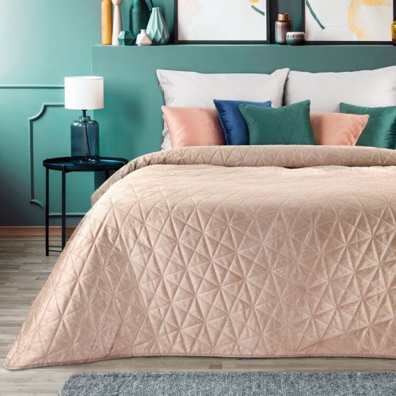 Narzuta welurowa,wykonana metodą hot press szerokość: 170 cm, długość: 210 cm, kolor: różowy, Gramatura: 150+65+100 GSM, Skład: 100% poliester