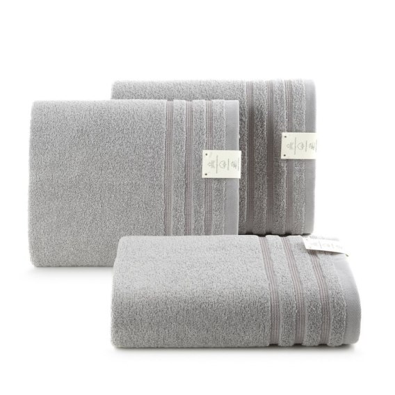 Puszysty ręcznik szybkoschnący z ozdobną bordiurą w lśniące pasy szerokość: 30 cm, długość: 50 cm, kolor: kremowy, Gramatura: 380 GSM, Skład: 100% bawełna; część ozdobna: 98.5% bawełna, 1.5% poliester