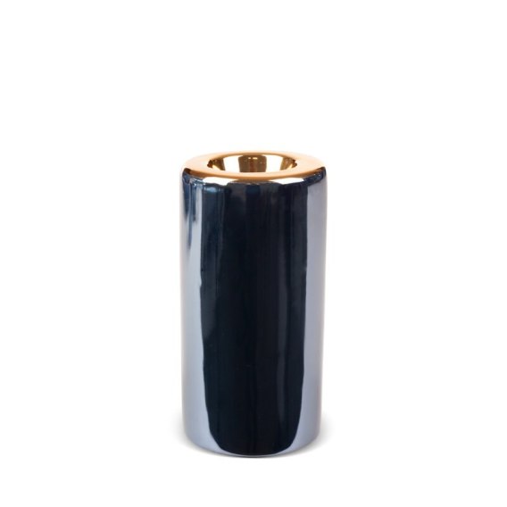 Świecznik dekoracyjny szerokość: fi 8 cm, długość: 15 cm, kolor: granatowy, Skład: glinka ceramiczna