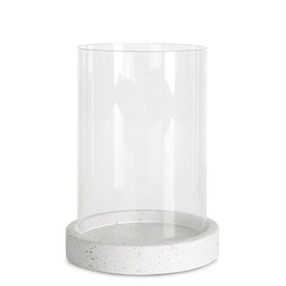Świecznik dekoracyjny szerokość: fi 15 cm, długość: 20 cm, kolor: transparentny, Skład: 60% szkło, 40% cement
