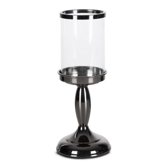 Świecznik dekoracyjny szerokość: O 13 cm, długość: 18 cm, kolor: czarny, Skład: metal, szkło
