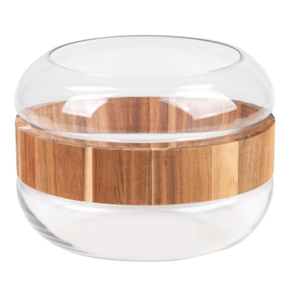 Wazon dekoracyjny szerokość: fi 25 cm, długość: 17 cm, kolor: biały, Skład: 70% szkło; 30% drewno