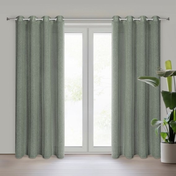 Zasłona gotowa strukturalna w stylu eko szerokość: 140 cm, długość: 250 cm, kolor: zielony, Gramatura: 130 GSM, Skład: 100% poliester
