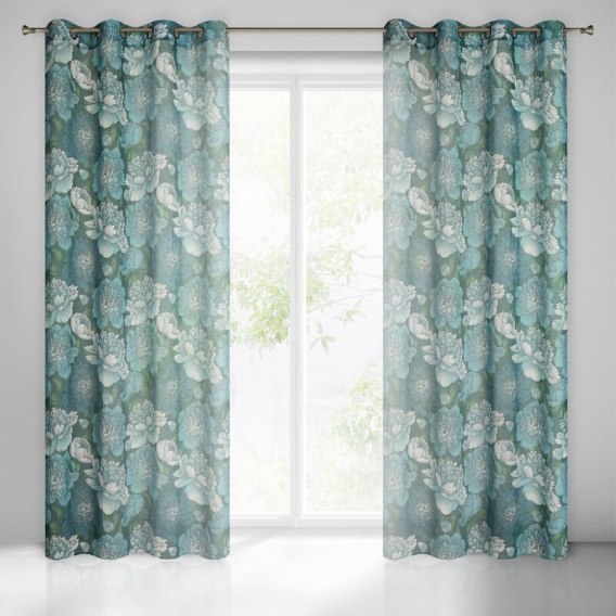 Klasyczna zasłona z tkaniny o strukturze płótna zdobiona pastelowym nadrukiem kwiatów ogrodowych. Średni stopień zaciemnienia. Tkanina łatwa w prasowaniu. szerokość: 140 cm, długość: 250 cm, kolor: oliwkowy, Gramatura: 130 GSM, Skład: 100% poliester
