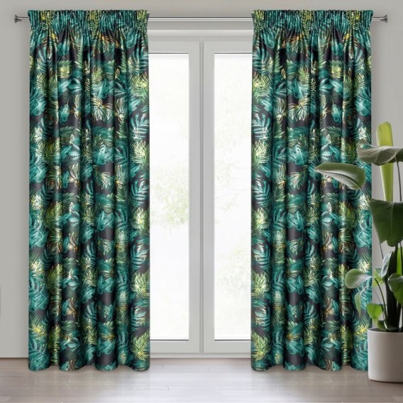 Zasłona welwetowa ze złotym nadrukiem szerokość: 140 cm, długość: 270 cm, kolor: czarny, Gramatura: 200 GSM, Skład: 100% poliester