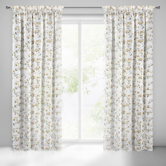 Zasłona gotowa z nadrukiem kwiatowym szerokość: 140 cm, długość: 270 cm, kolor: biały, Gramatura: 75 GSM, Skład: 100% poliester