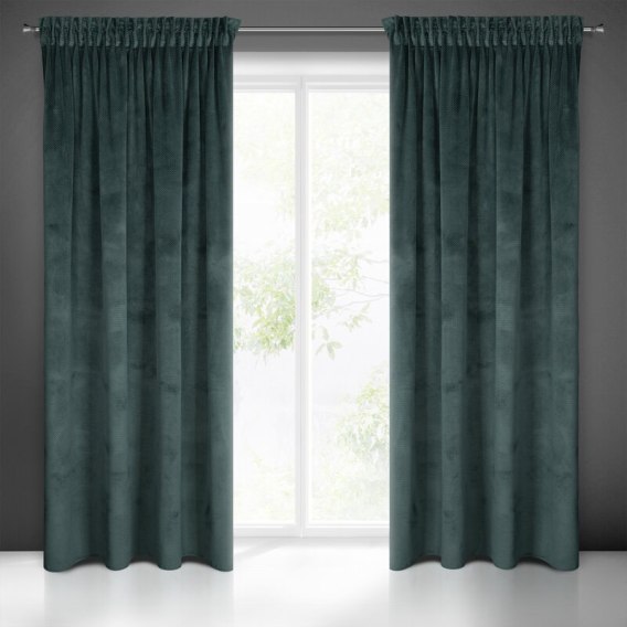 Lekka, welwetowa zasłona z miękkiej tkaniny o subtelnym połysku, charakterystycznym dla welwetów. Miękko się układa. Prasować na lewą stronę. szerokość: 140 cm, długość: 300 cm, kolor: ciemnomiętowy, Gramatura: 210 GSM, Skład: 100% poliester
