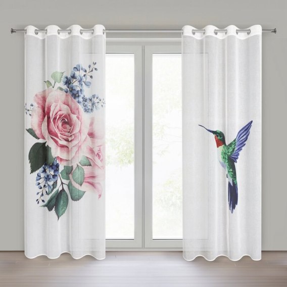 Komplet zasłon gotowych z motywem kwiatowym, pakowana w komplecie po 2 szerokość: 140 cm, długość: 260 cm, kolor: biały, Gramatura: 75 GSM, Skład: 100% poliester