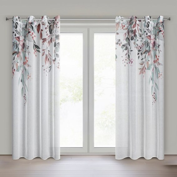 Komplet zasłon gotowych z nadrukiem, pakowana po 2 szt szerokość: 140 cm, długość: 260 cm, kolor: biały, Gramatura: 70 GSM, Skład: 100% poliester
