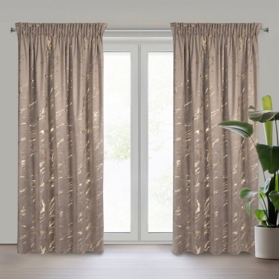 Zasłona gotowa welwetowa z błyszczącym nadrukiem szerokość: 140 cm, długość: 270 cm, kolor: brązowy, Gramatura: 200 GSM, Skład: 100% poliester