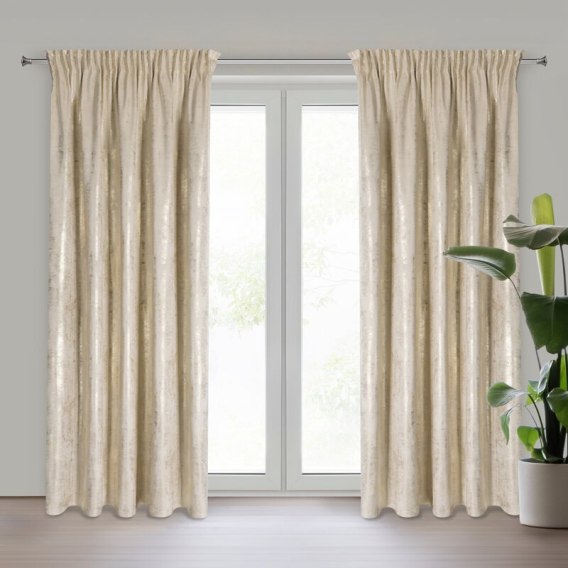 Zasłona gotowa welwetowa z błyszczącym nadrukiem szerokość: 140 cm, długość: 270 cm, kolor: jasnobeżowy, Gramatura: 200 GSM, Skład: 100% poliester