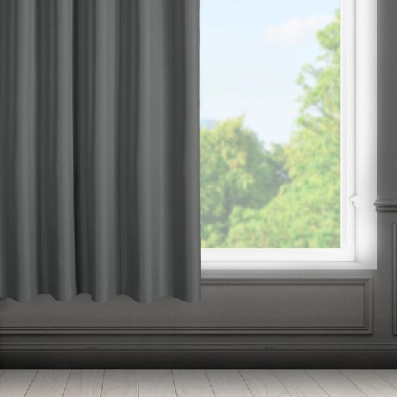 Zasłona gotowa jednokolorowa matowa szerokość: 140 cm, długość: 175 cm, kolor: grafitowy, Gramatura: 140 GSM, Skład: 100% poliester