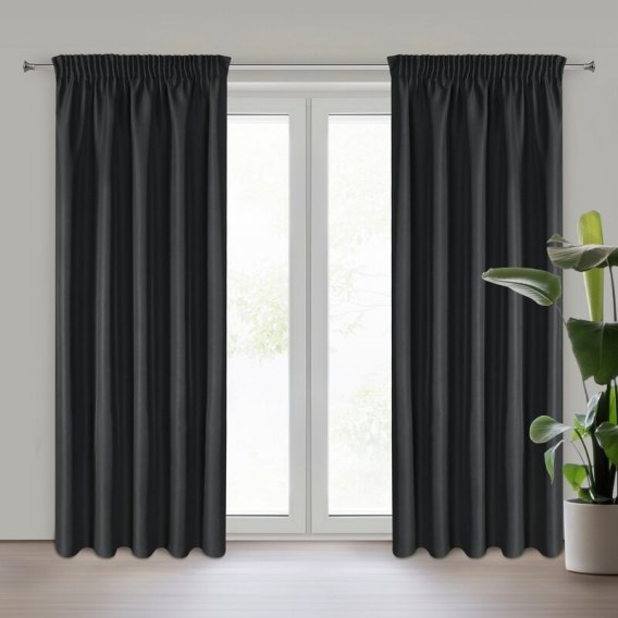 Piękna, jednokolorowa zasłona z miękkiej tkaniny o matowym wykończeniu i satynowym splocie. Uniwersalna dekoracja do każdego wnętrza. Łatwa w prasowaniu. szerokość: 140 cm, długość: 270 cm, kolor: czarny, Gramatura: 140 GSM, Skład: 100% poliester