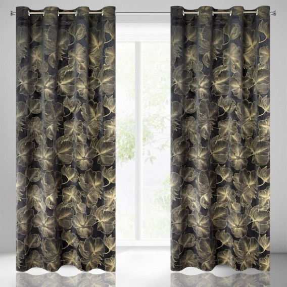 Zasłona welwetowa ze złotym nadrukiem szerokość: 140 cm, długość: 250 cm, kolor: czarny, Gramatura: 200 GSM, Skład: 100% poliester